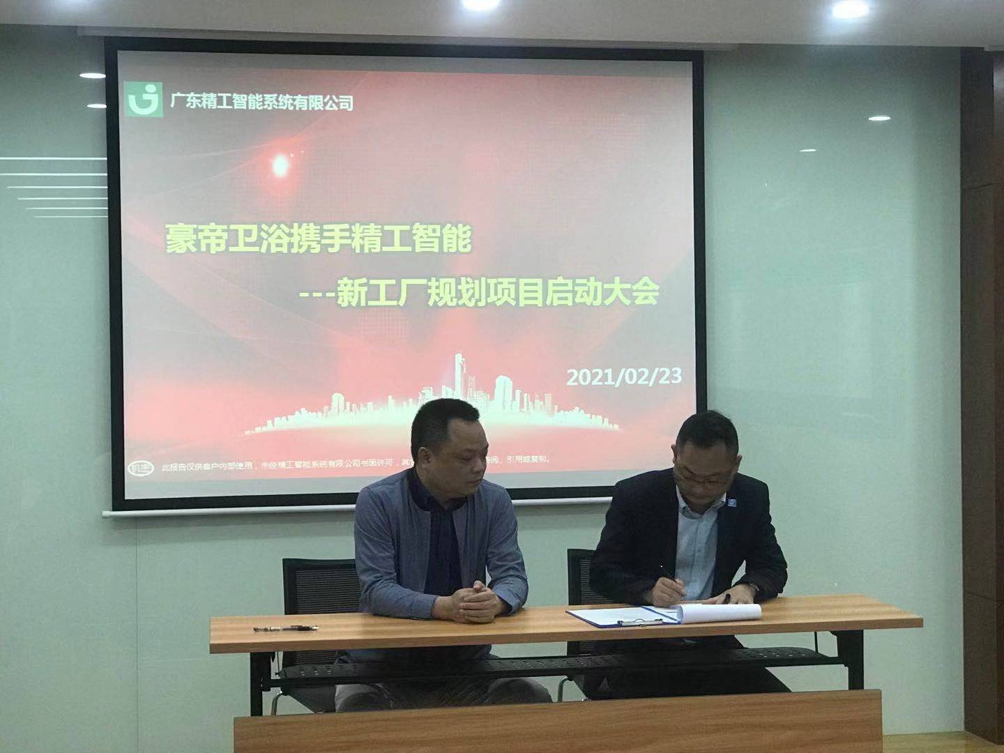 2021年2月23日,豪帝卫浴智能工厂妄想项目启动大会顺遂召开。豪帝卫浴总司理陈总、陈飞总、夏司理、UG环球智能工厂妄想事业部总司理常先生及其它项目组成员配合加入了本次聚会。